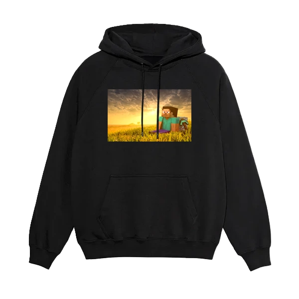 Šis džemperis – tikras „Minecraft chill“ nuotaikos simbolis. Steve ilsisi po ilgų kasybų, o saulė leidžiasi taip gražiai, kad net pamiršti „Creeperius“. Puikus pasirinkimas visiems, kas mėgsta pixel vibe ir ramiai pagamint.